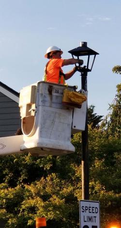 Phase 4 of the LED Fixture Conversion project is converting more than 400 residential street lights in the Villebois neighborhood as well as lights at signalized intersections throughout Wilsonville.
